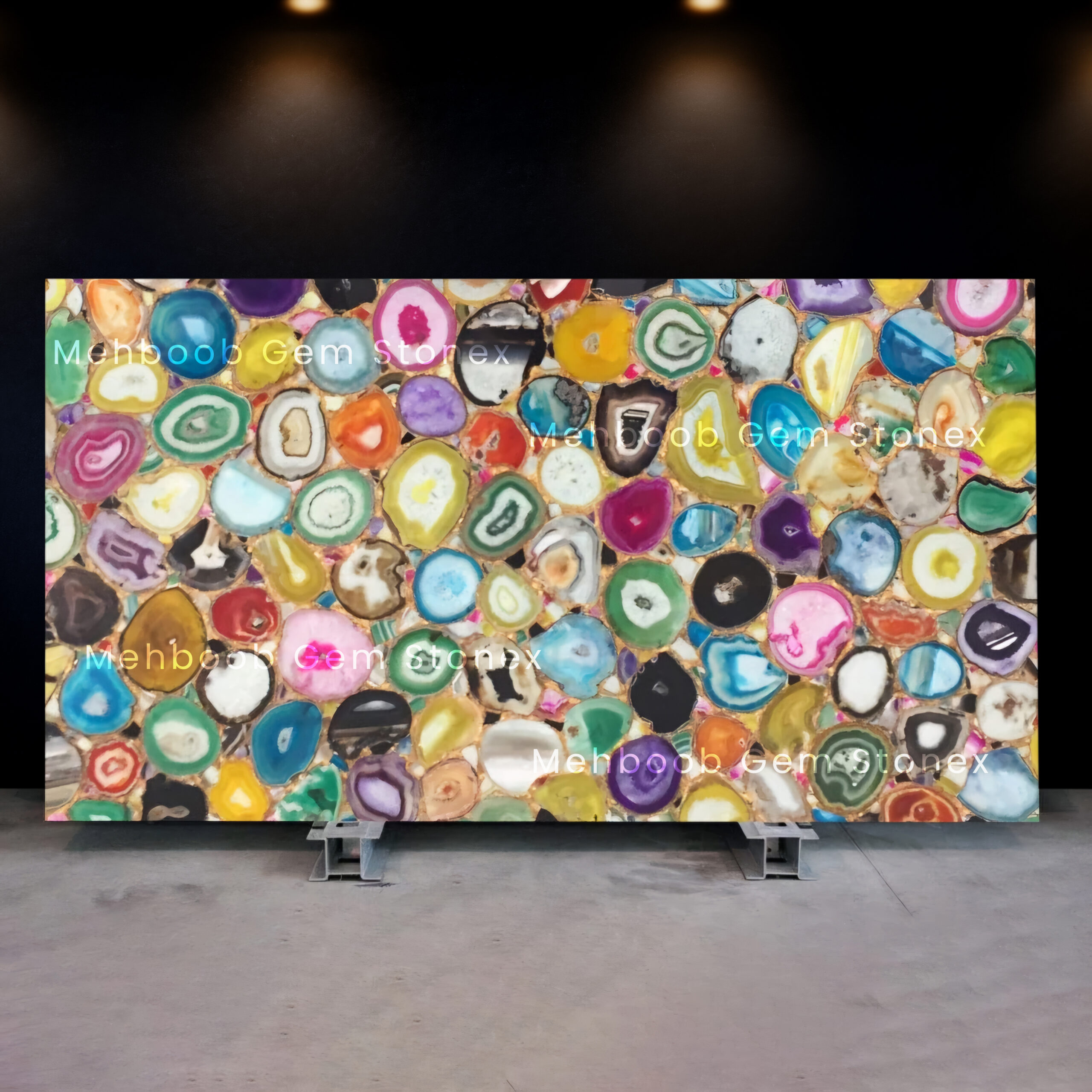 Agate is believed to enhance balance, positivity, and creativity, while its natural patterns bring a bold and artistic flair to any space. Ideal for backlit walls, tabletops, countertops, and feature décor, this slab transforms ordinary interiors into extraordinary spaces.